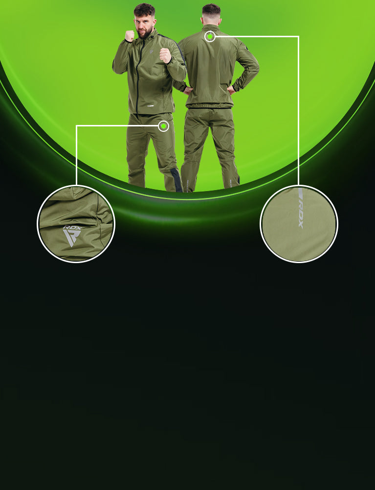• AISLAMIENTO Y PROTECCIÓN CONTRA LA INTEMPERIE - El traje de sauna RDX C1 para hombres y mujeres cuenta con avanzadas costuras que lo hacen muy duradero. Las aberturas elásticas en los puños, la base de la chaqueta, la cintura y las aberturas de las piernas te mantienen aislado en cualquier clima.